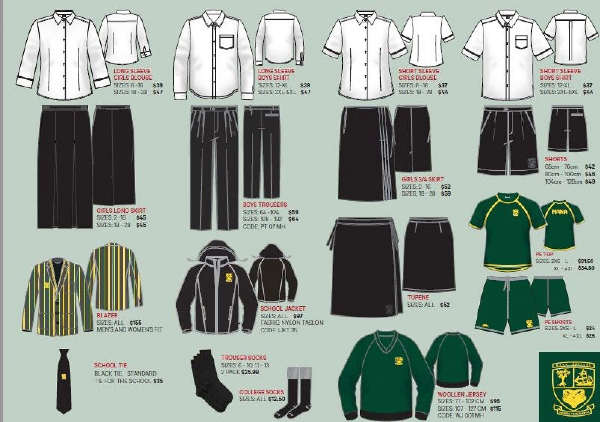 A reminder about the expectation we have at the school regarding uniform. Mana College is a school that is proud of it's smart formal uniform. It defines us as a school compared to all others in Porirua as the only school where each student is expected to be in blazer, tie, and white shirt, with options for the pants and skirt.