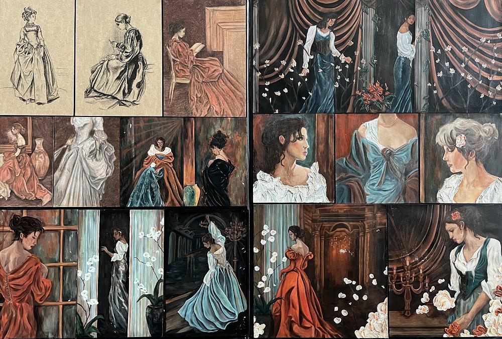 Here are two great examples of students succeeding in visual arts at Mana College. In Fig one we see a folio painted by Jade Hanrahan, at the beginning of the portfolio she is exploring traditional figurative painting, using traditional techniques such as charcoal and pastel. As the board develops she introduces new subject matter and conventions to provide a contemporary feel to the works. Hard to see in the photos but these paintings shimmer under light due to the metallic mediums Jade used in her later paintings. Ka pai Jade!