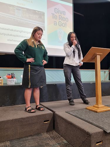 To finish off the week we came together at our celebration assembly on Friday Morning. Spirits were high and we were very proud and impressed with our Senior leaders poi ability, as well as the efforts of tauira and kaiako who gave the longest place name in the world a go “Taumatawhakatangihangakoauauotamateaturipukakapikimaungahoronukupokaiwhenuakitanatahu”.
