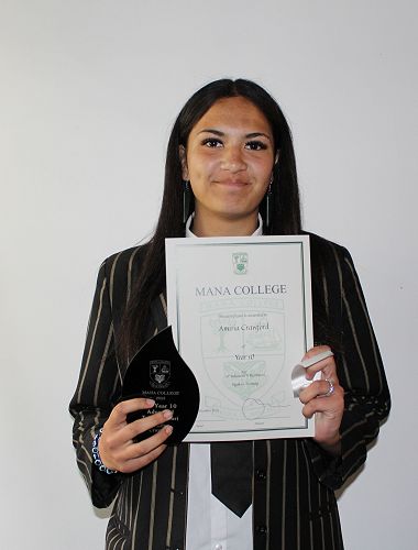- Rangatahi Award (Leadership & commitment in Kapa Haka) - Amiria Crawford