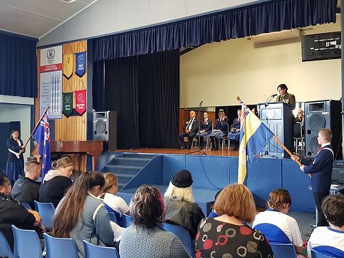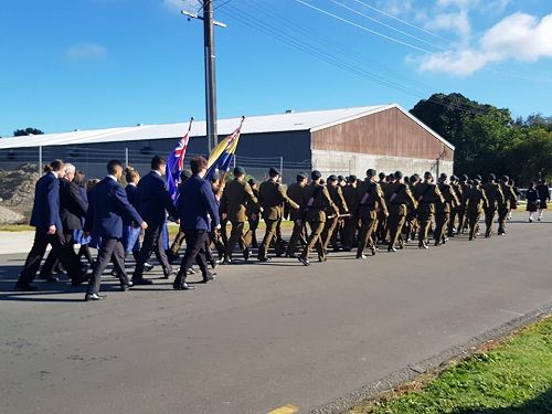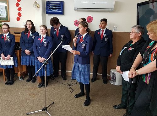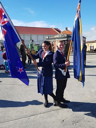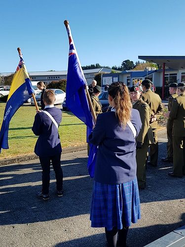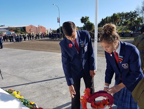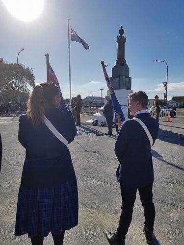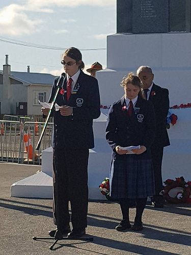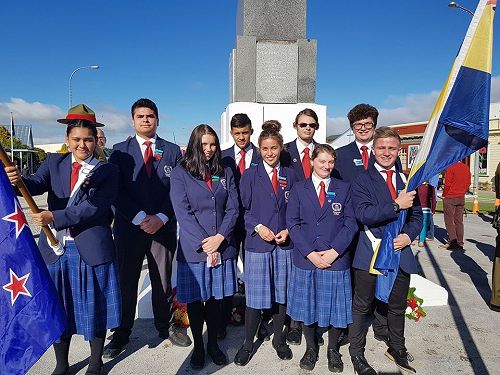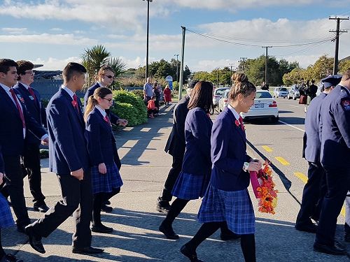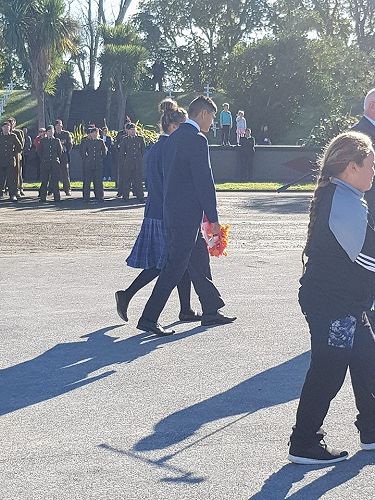 Sports Captain's Tayla Kuiti and Connor Thwaites headed the march to the Cenotaph as flag bearers and Myellah and Massey Harvey laid wreaths in remembrance. Pachience Fenn and Justin Jurgens read The Roll of Honour.