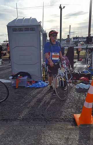 They had to complete a 1 kilometer swim, a 45 kilometer bike and a 10 kilometer run.