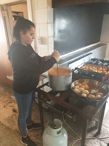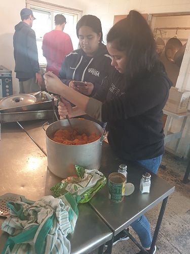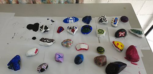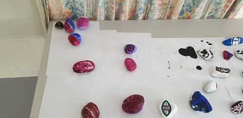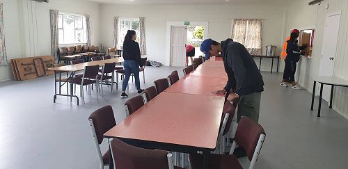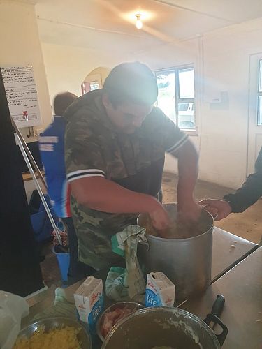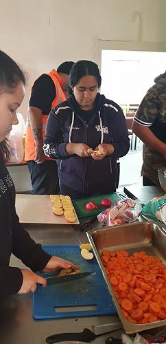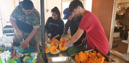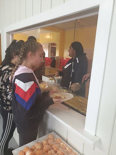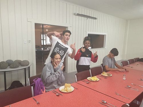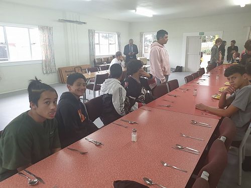 Supported by Senior Te Ara students who were also working towards NCEA credits by preparing the kai, the junior students learned about mihimihi, kohatu painting and haka.