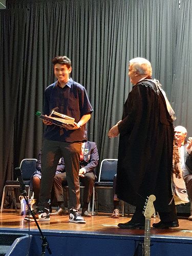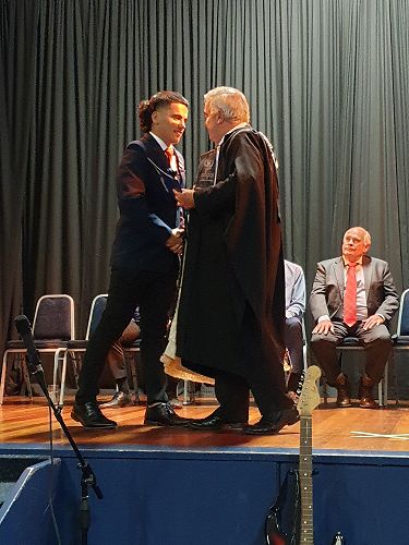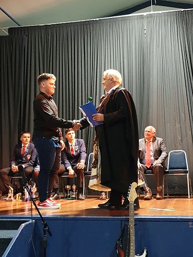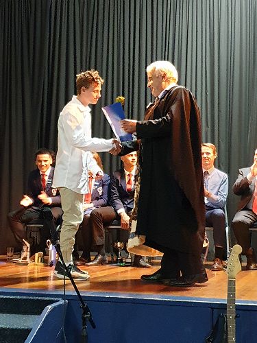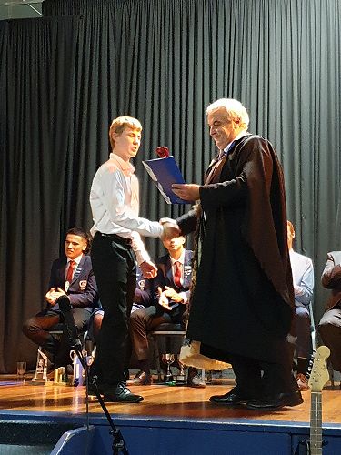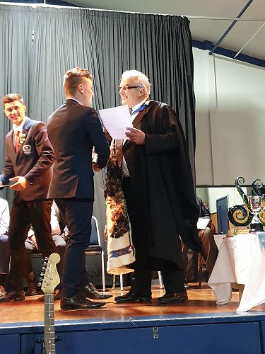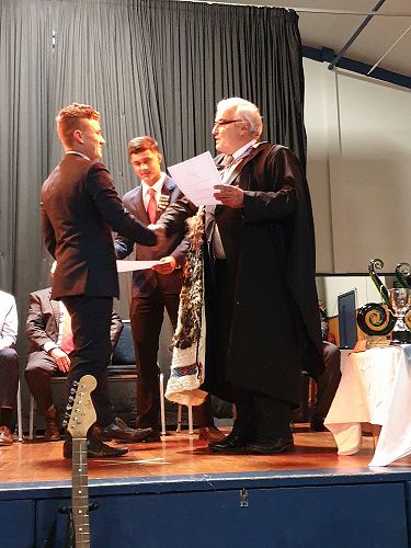 ISAAC LARACY - Graduation Certificate, Arts Captain, 1st in NCEA Level 3 Music Cup (donated by the Marsh family), The Andre Parfitt Cup for Musical Performance. He plans to study music at university next year.
