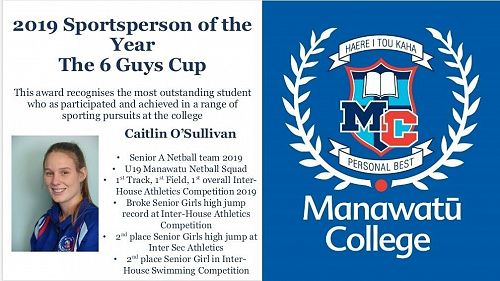 CAITLIN O’SULLIVAN - Graduation Certificate, Allen House Captain, Senior Girls Athletics Field, Track & Champion (Miss M Small’s Cup), Senior Girls Cross Country (Mr R J Murray’s Cup), Netballer of the Year (Tony Robinson Motors Trophy)(shared with Saryah Chambers) and an Academic Award. She plans to attend the Institute of Sport in Wellington next year.
