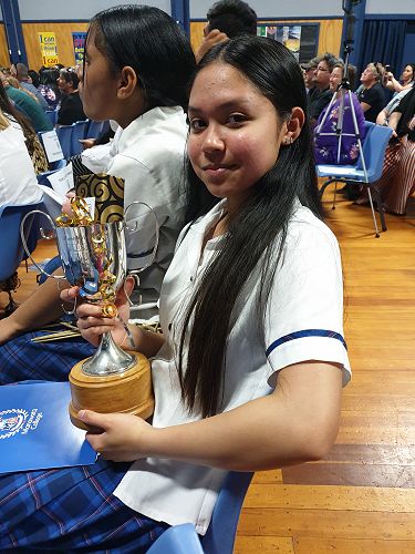 TE AHIMARINO KUNAITI - Graduation Certificate, Field House Vice Captain, 1st in NCEA Level 3 Te Reo Maori, 1st in NCEA Level 3 Te Ara O Nga Rangatira, 1st in NCEA Level 3 Chemistry Cup (donated by Mrs P Shields), Te Reokaha Trophy donated by the Strongman Whanau for Excellence in Te Reo Maori, Te Matau a Maui Trophy donated by the Principal, Bruce McIntyre for Excellence shown from a Senior Student in the Highest Level of Maori Language in NCEA Levels 1, 2 & 3). She plans to find full-time employment next year.