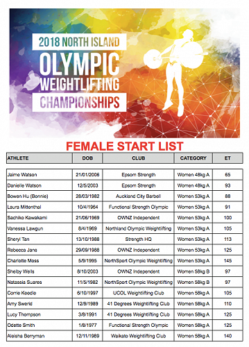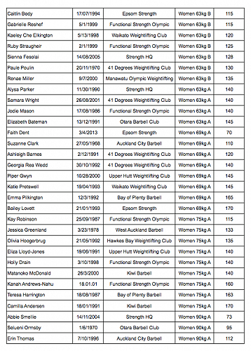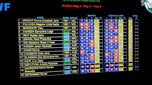 Sam Hansen was the first placed junior and the second placed senior in the competition. She broke the New Zealand Junior record for snatch under 69kg by hitting a 77kg personal best snatch. She also earned a personal best total of 171kg.