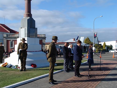 The morning of ANZAC Day was a very long one for our Senior Student Leaders. It began with a meeting at the Foxton RSA at 5:30am to prepare to march to the Cenotaph for the Dawn Service. Dion McErlean and Emily Culleton were the flag bearers and led the march, and Kyle Williams-Simeon recited The Ode.