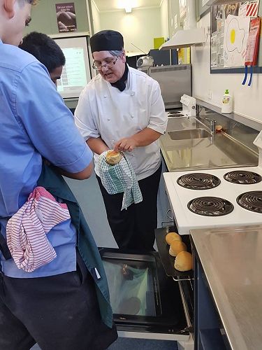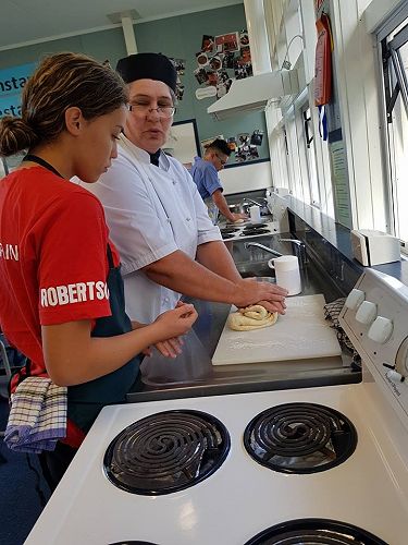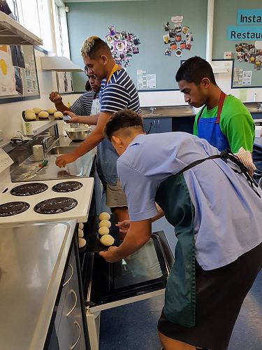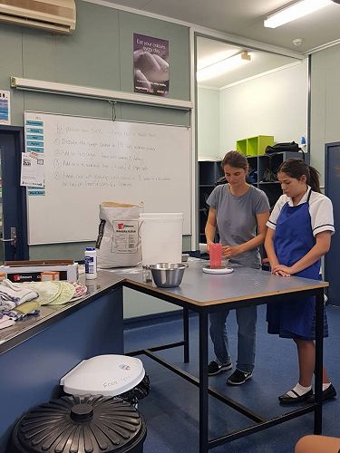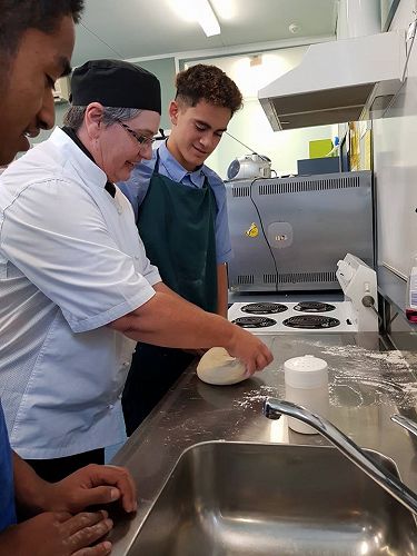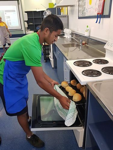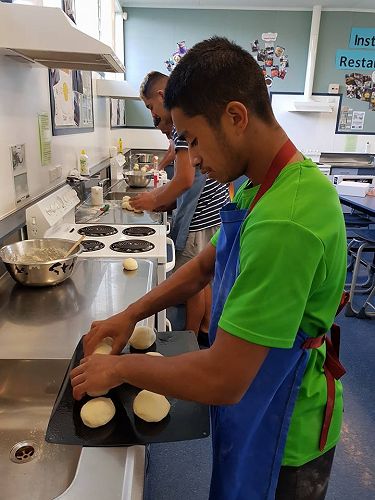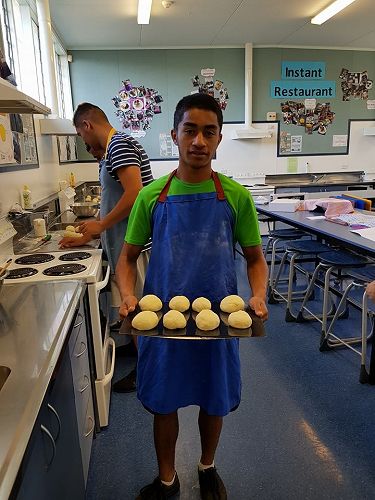 On Wednesday 9 May the level 2/3 Food and Catering class learned how to make bread and buns with guest visitor Lenore Winterburn, a cookery tutor from the Horowhenua Learning Center.