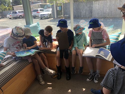 The search ended in the Mapua Community Library and the buddies enjoyed sharing a book or two before heading back to school. Toetoe would like to say "Thank you Maire!! You are awesome helpers!"