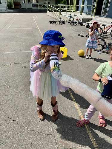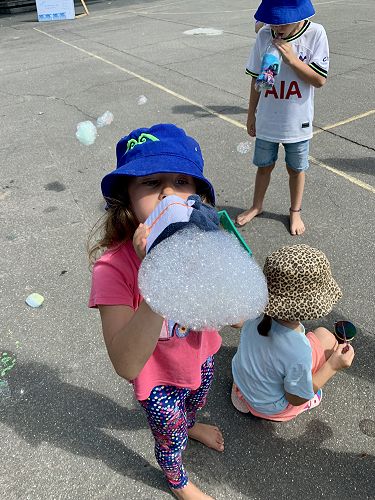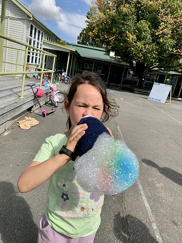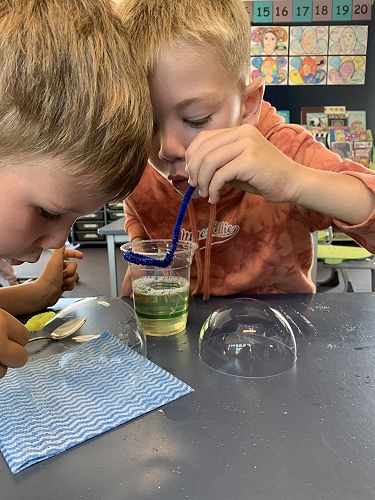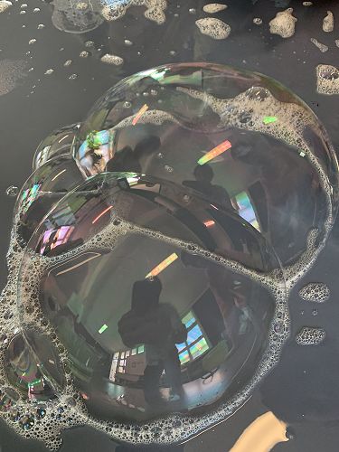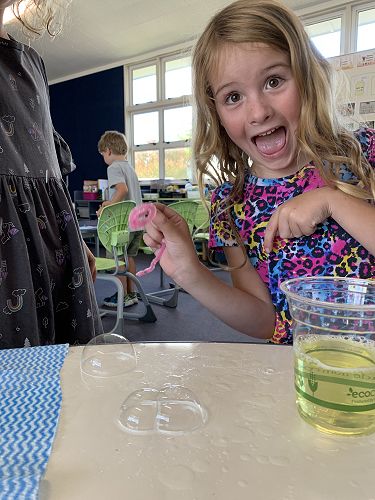 We tested different types of bubble mixture to see which gave us the best bubbles. We made different types of bubble blowers to see if we could get different shaped bubbles. We added sugar to the bubble mixture to see if we could make bubbles that didn't pop so easily and we also made colourful rainbow snake bubbles!