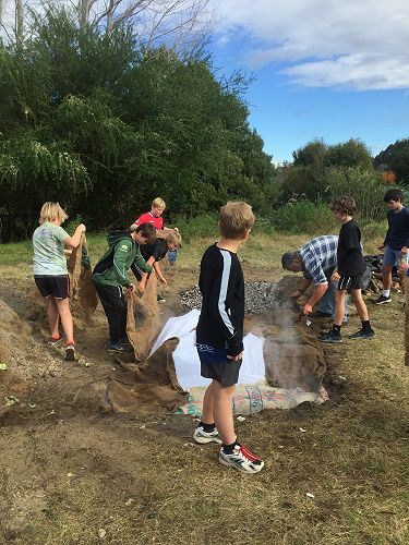 Mapua School came together with parents and the wider community to create a hangi to feed more than 300 people.