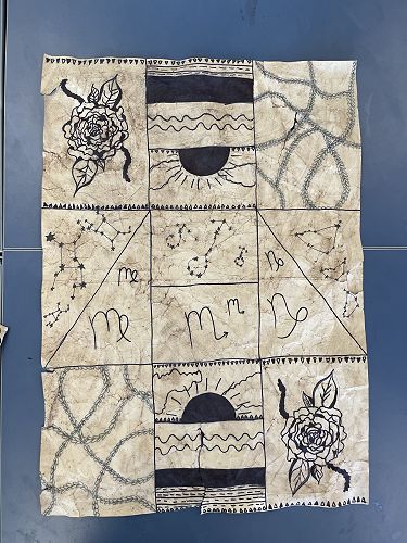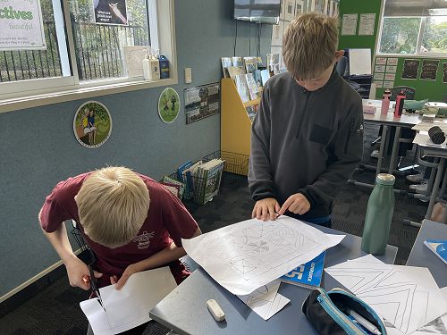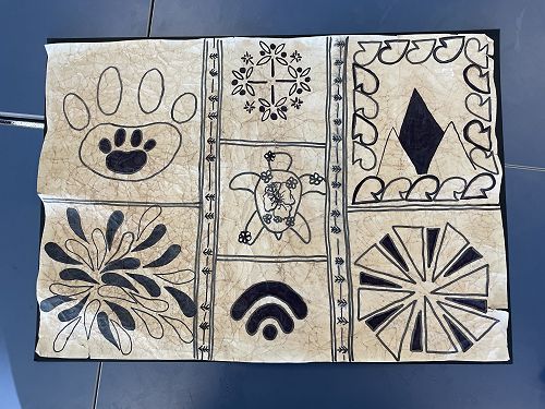 For the past three weeks the Titoki maths group has been investigating some geometry principals in maths - rotation, reflection, translation and enlargement. We discovered that lots of these principals are used in traditional tapa cloth design and we used these as a starting point for inspiration. We spent a bit of time exploring what the various symbols meant. We also identified how the different types of maths are represented within the designs. From this point we then designed our own tapa cloths using symbols which told our story, whilst also ensuring that our designs included multiple examples of rotation, reflection, translation and enlargement. We went over our final results with strong coffee to dye our paper so the classroom now has a faint smell of stewed coffee! I think you'll agree that the results are stunning. It just shows that maths really can be fun and creative!