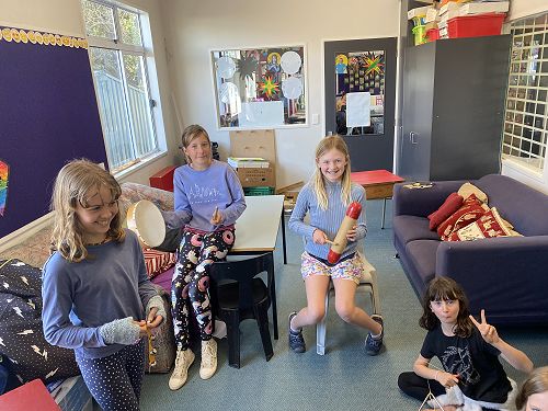 The Middle & Junior school have focused largely on singing; waiata and songs with actions to them. Since Strike visited school Harakeke has been doing a lot of drumming in their learning through play in the morning. They have also looked at different rhythms and repeating rhythms.
