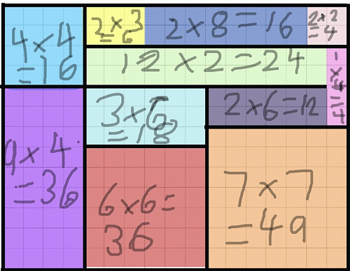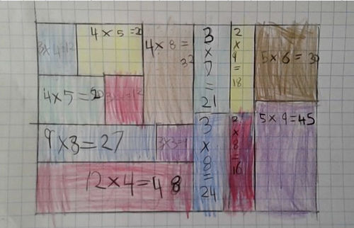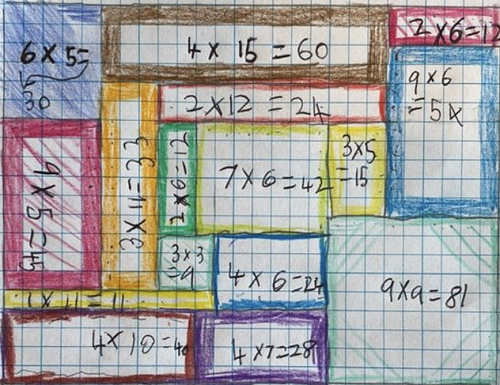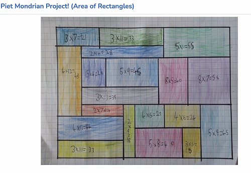 As well as writing about art, the students were challenged to use multiplication arrays in Piet Mondrian style and the results are mathematical masterpieces!