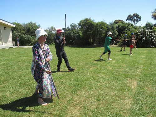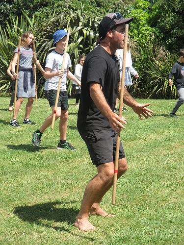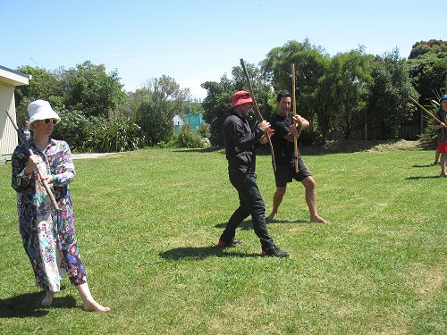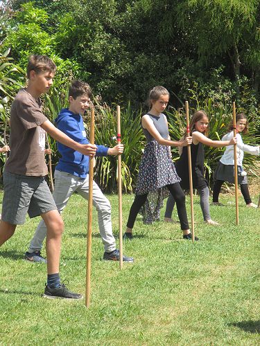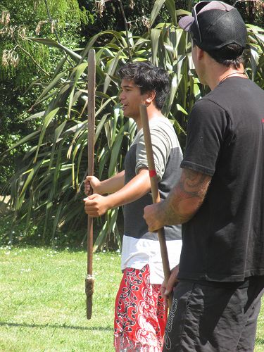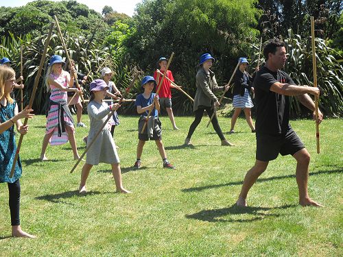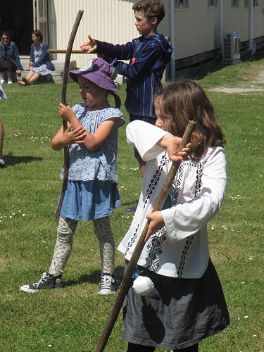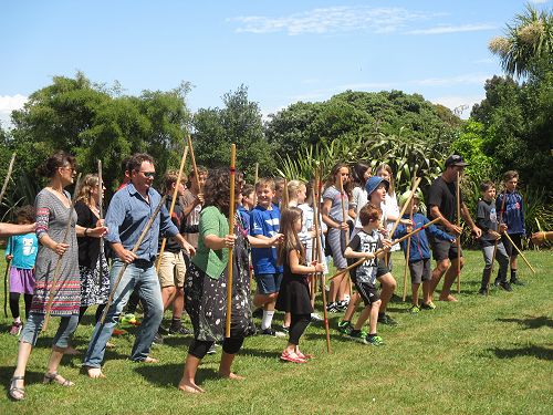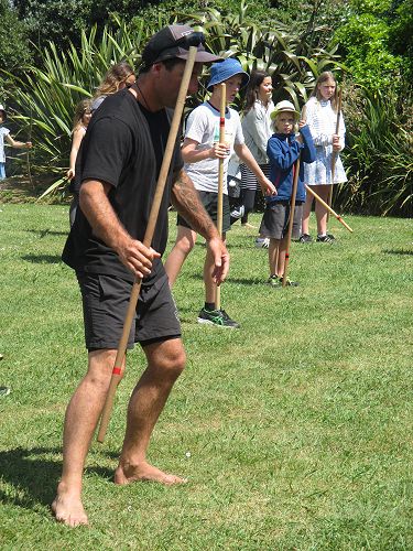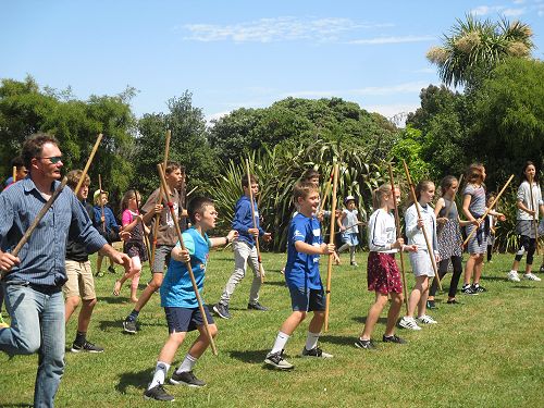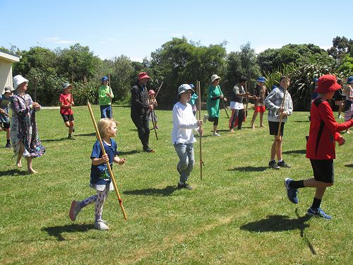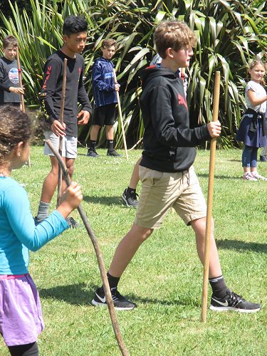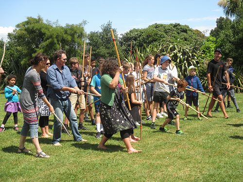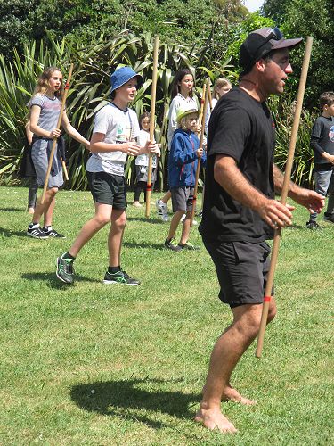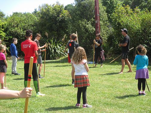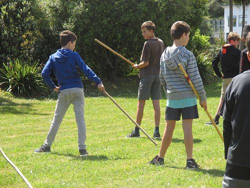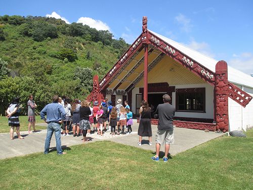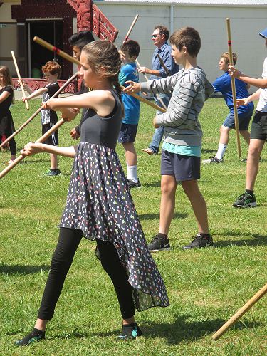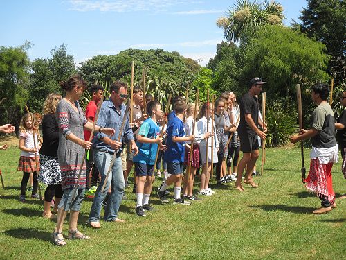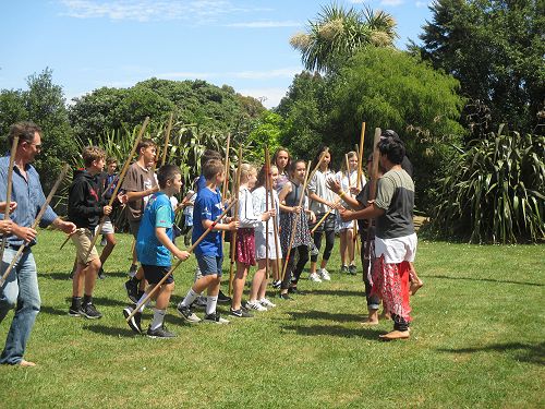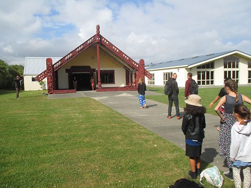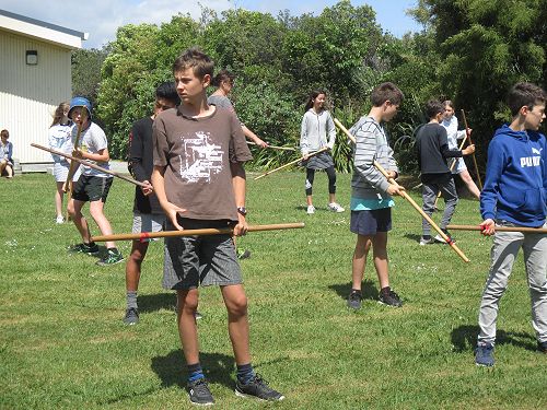We had insightful and interesting stories about Kakati wharenui and the carvings within. We learnt to sing a waiata and were told the story of the how the world began from a Maori perspective. We learnt some taiaha or rakau moves too. All this came after we were welcomed onto the Marae with a traditional powhiri. A wero (challenge) was laid down and accepted by Mr C and we walked onto the Marae with females first (life bringers) and then the males (death bringers). We learnt how the roles for the men and women contributed to the making of a Marae and also of history.
