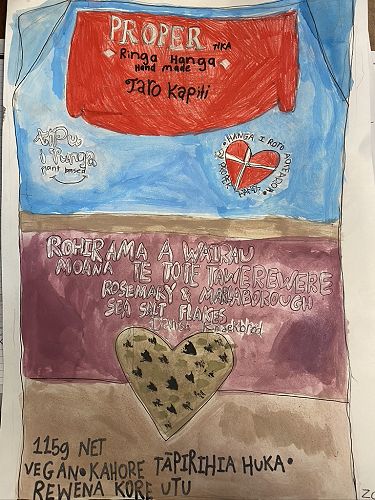We looked closely at the labelling of Whittakers 'Miraka Kirīmi' chocolate and noticed that the company logo was still in english and they had written the english under the te reo. So, we set out to create our own posters with this in mind. We will send these to the companies and wait for the change...