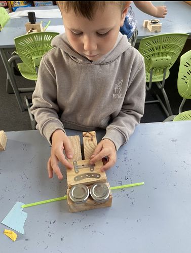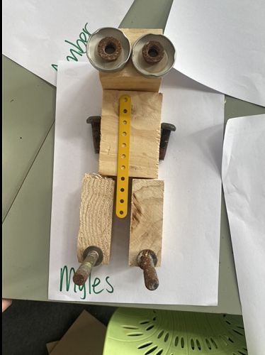 We had a whole box of 'treasure' and some wood that we set about turning into a robot. We were inspired by a book called Franky in which a boy builds his own robot. We used all sorts of bits and bobs out of the treasure to create our plan which was photographed so we could remember what we were planning on making. We then used our plan to help us write a robot biography (with some help from the amazing Maire tamariki). Some of our wood was quite rough so we sanded the edges smooth, spray painted our wood and now we are just waiting for our tuakana to come back tomorrow to help us assemble our creations.