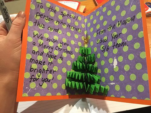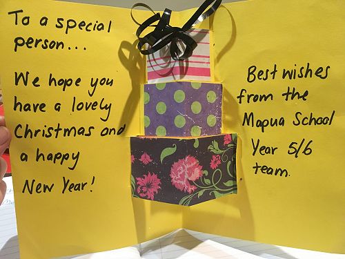 Last Thursday we had a huge day creating cards for the Red Cross and Age Concern to distribute to elderly people around our region who might be alone on Christmas. We created nearly 60 fabulous cards, which we then gave over to the very thankful ladies from Red Cross and Age Concern on Friday morning. They were blown away with the time and care the students had put into their cards and also with their communication throughout the project.