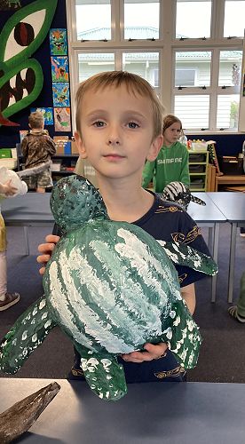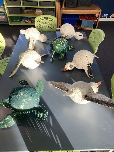 In Tōtara this term we've been learning about animals that go on incredible journeys. We made paper mache models of some of these animals, including the royal albatross, leatherback sea turtle, and longfin eel.