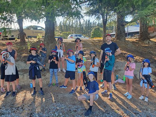 Laser Tag: Levi was running the laser tag. We got split into boys and girls. He showed us the high tech laser guns worth $1000 each. The first two rounds we were trying to get the most kills, running around the hill, hiding behind tires and barriers for protection. It was fun having the adults playing with us, they helped us with tactics and directing the play. Laser tag was a crowd favourite but it was hot and tiring too.