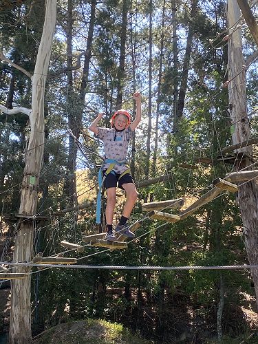 High ropes: This was walking on wires, suspended in trees, testing our balance and agility as well as our nerves. At the start it was quite scary but once you were up there it was exciting. A favourite challenge was the tarzan ropes and the seesaws. The leap of faith was a bit scary. We all loved zip-lining off at the end.