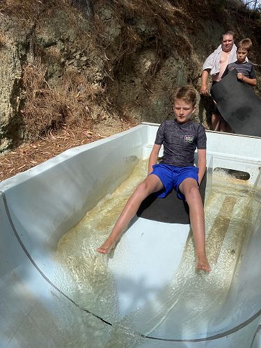 In the afternoons we got to use the waterslide, pool, jumping platform and hydro-slide. We all loved the hydro-slide.