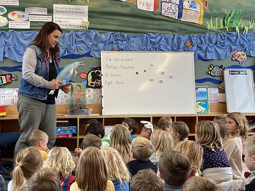 Last week the Junior Team enjoyed hosting a visitor, Kelly, from the Nelson Provincial Museum. Kelly told us the pūrākau (local story) of Mātua Hautere and Kaikaiāwaro.
