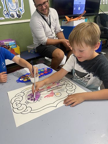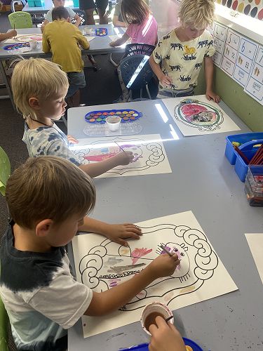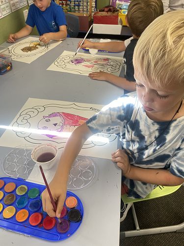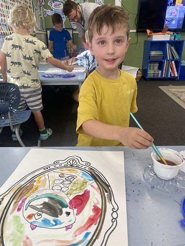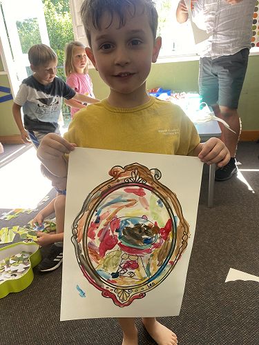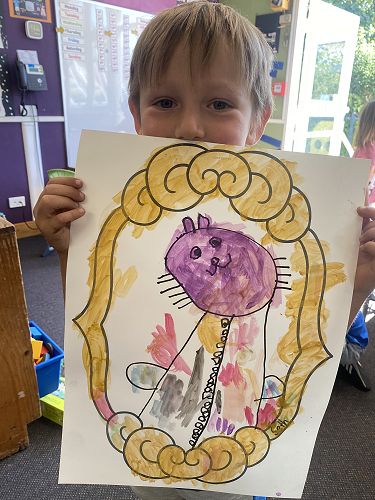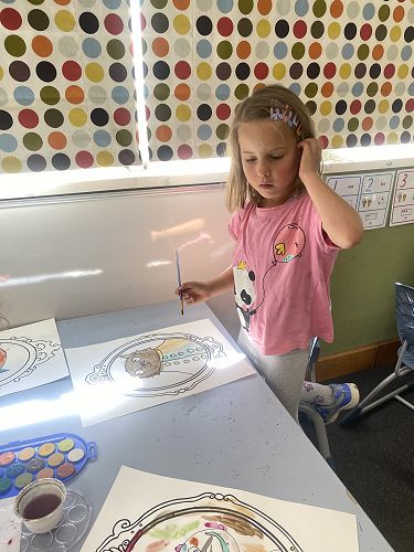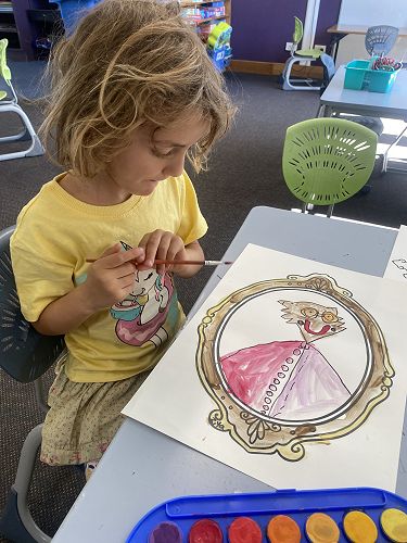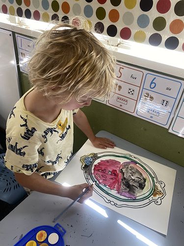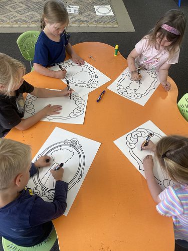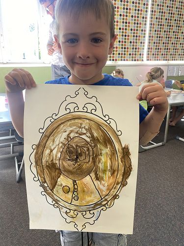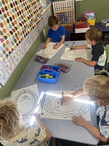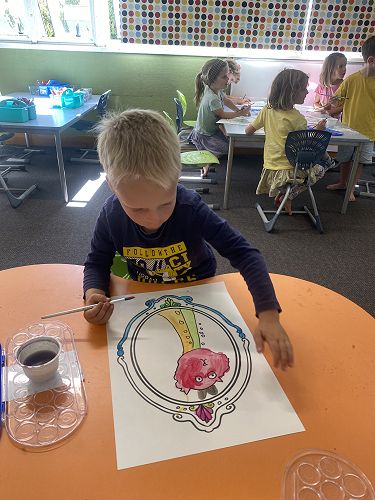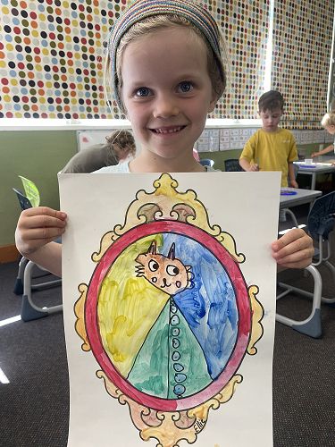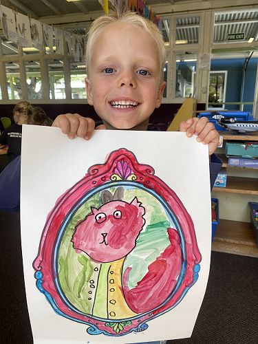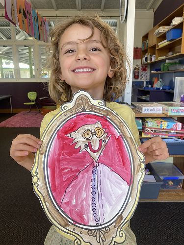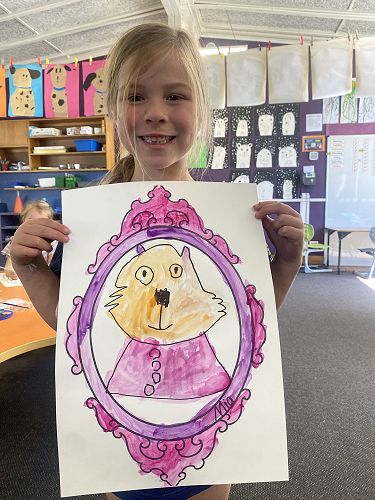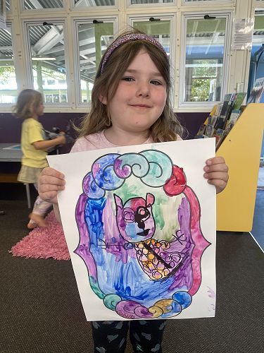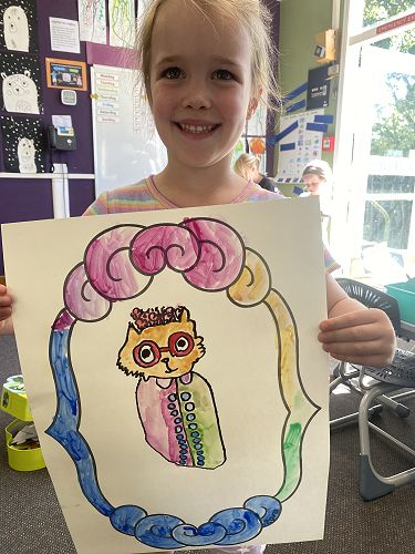 We had to choose our fancy picture frame and then we created our art works using vivids and watercolours. We had to be careful that we only included the top half of Flora or Nora.