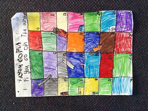 Over the last two weeks, Totara have been putting together their own versions of Snakes & Ladders. Firstly we started off with a draft version where we decided the theme of our games and what it would look like. Once we were happy with that we could choose the size of the paper to create our game.