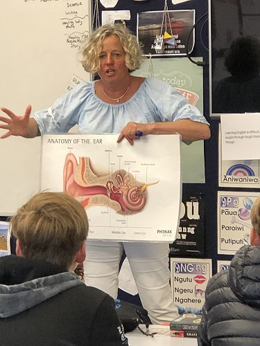 Tracy from the Nelson Hearing Association came and spoke to the three intermediate classes to provide information around the irreversible damage they could be doing to their ears. With more and more young people using headphones and earbuds the chance of damaging their ears is increasing. Tracy stated that the safe (and this is at the top end) decibel rating is 85dB. She recommends limiting headphone use to 90 minutes per day at half volume. Tracy explained that once the hairs in the cochlea are damaged they do not grow back and can't be replaced. She emphasised the need for our young people to display self-regulation in regards to their own personal health, and just like decisions around drugs and alcohol, decisions around keeping their ears safe are just as important. Tracy also mentioned how we can be supportive of those in our communities that have already suffered hearing loss.