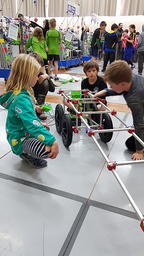 They really did work at a level together that I would not have expected for their ages. Very impressive! They did gain attention from other parents and teachers (due to their skills and collaboration) and the gentleman running the event commented that they were so amazing to watch he didn't want to have to go off and judge the other teams as he was fascinated watching them work together.
