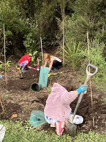 Every year Māpua School runs an enviro group called Tāne's Ark, which is for Year 5-8 students. This has been going for over 10 years and has involved many projects. A highlight of being in Tāne's Ark is heading over to Aranui Park at lunchtimes to plant and mulch native trees, plants and grasses. We also grow veges in the raised beds here at school and grow native seedlings.
