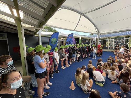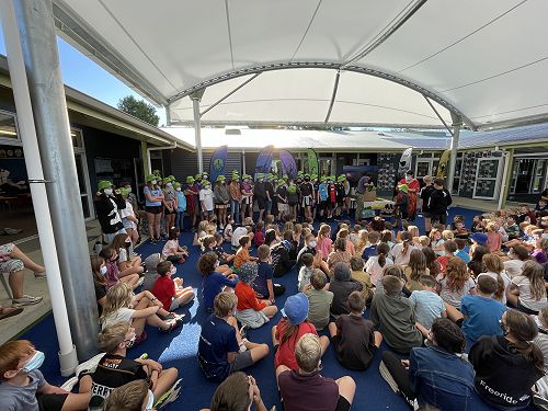 Our hosts Reed and Ngaio did a great job as MC's and Jackson confidently read a speech about the Year 8's leadership week. All of the Year 8's were presented with their green hats which have come to symbolise that they are ready to be the role models of Māpua School.