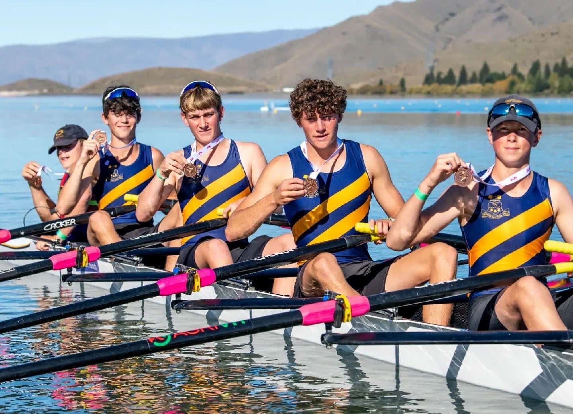 The senior MBC Rowing boys have just returned from a great week at Maadi Cup which attracted 1306 competitors from 95 schools around the country. MBC took a squad of 13 rowers and 1 coxswain to Lake Ruataniwha in Twizel, they qualified for 7 A finals and brought home a fantastic medal haul: