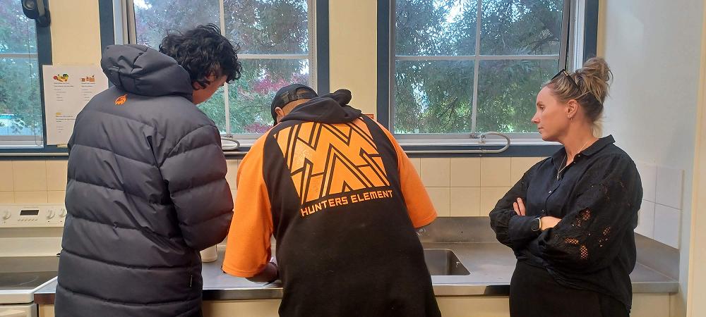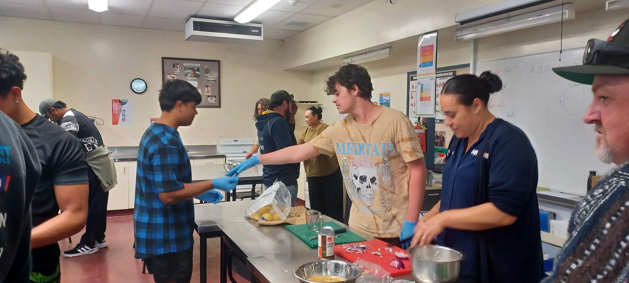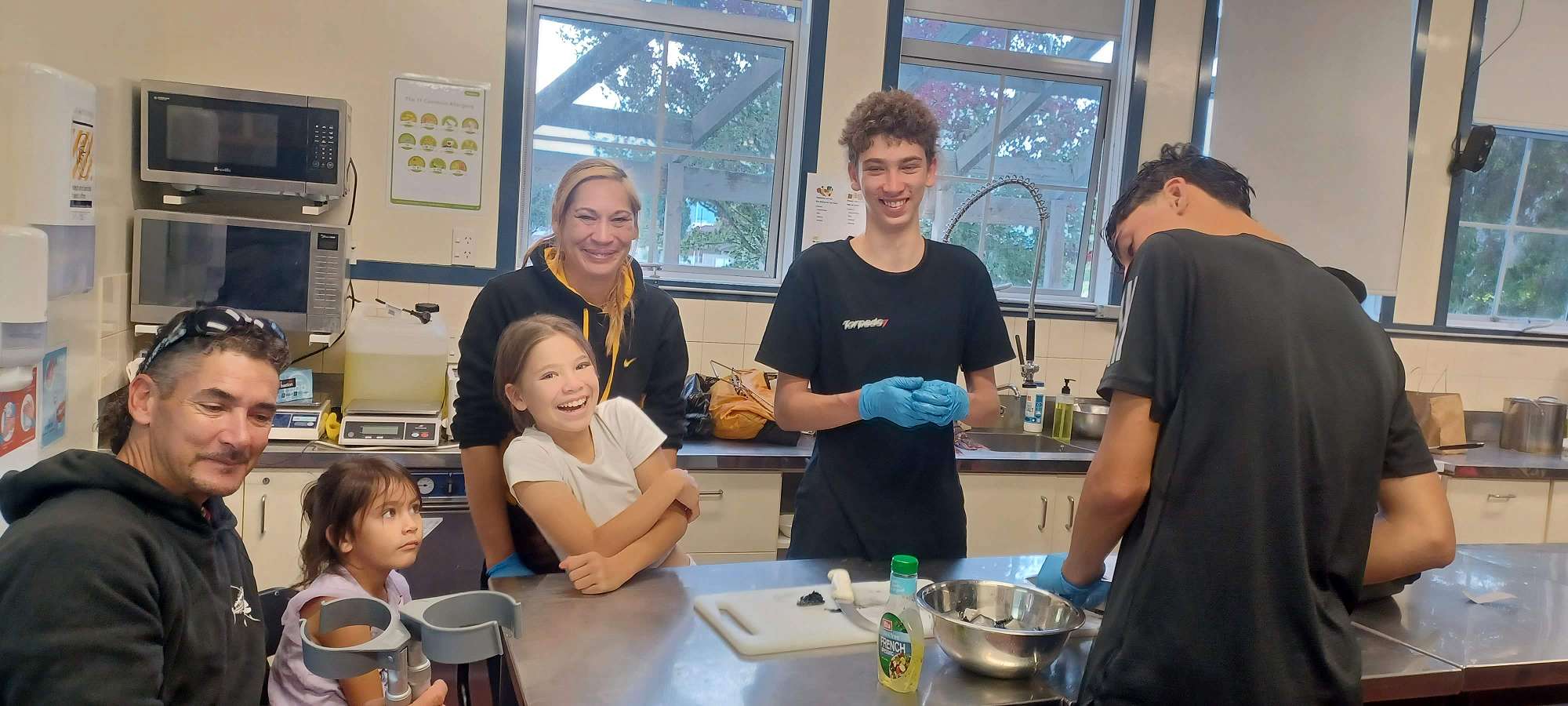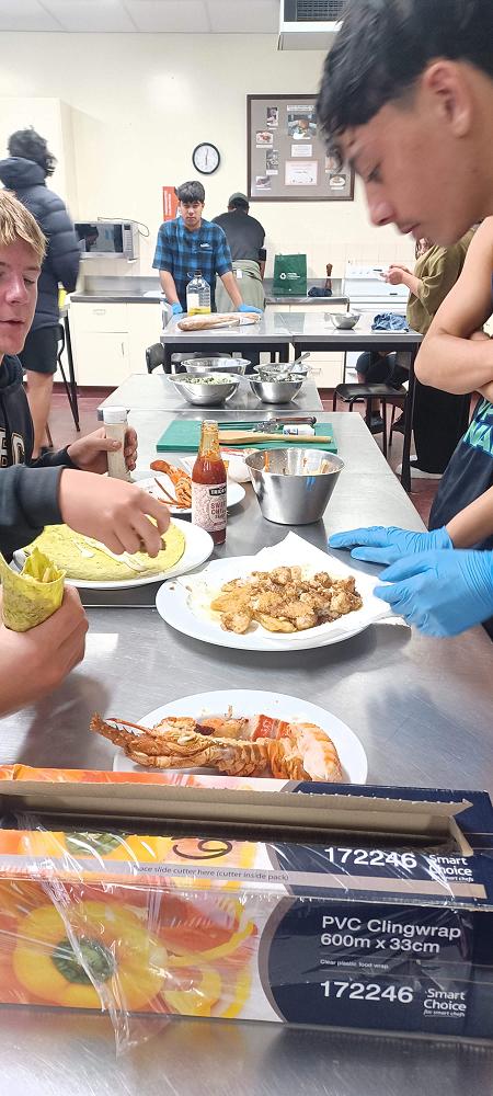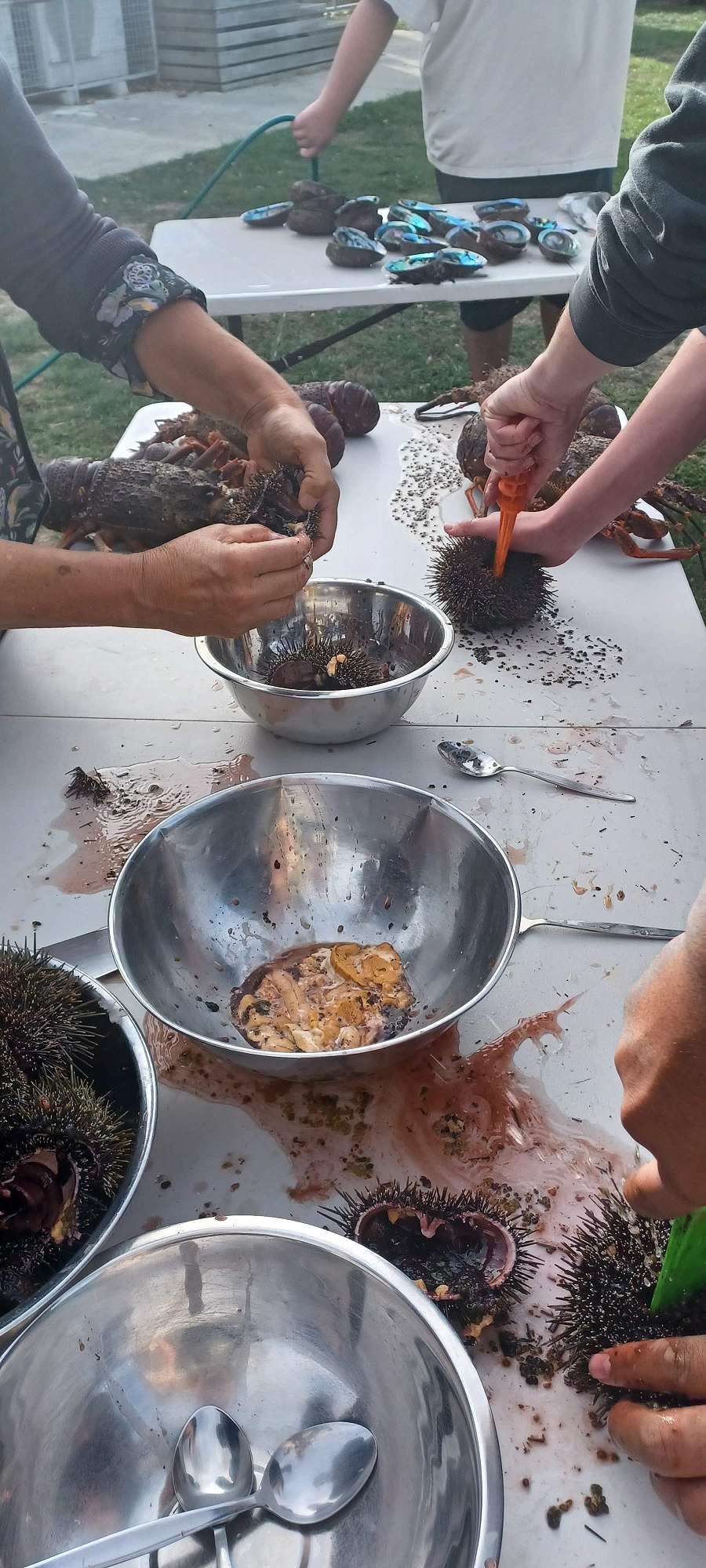 Back to school with their catch, ākonga, with assistance from whānau, Whaea Jan and Delyn, cleaned and prepared the kai for a tino hakari (amazing feast)!