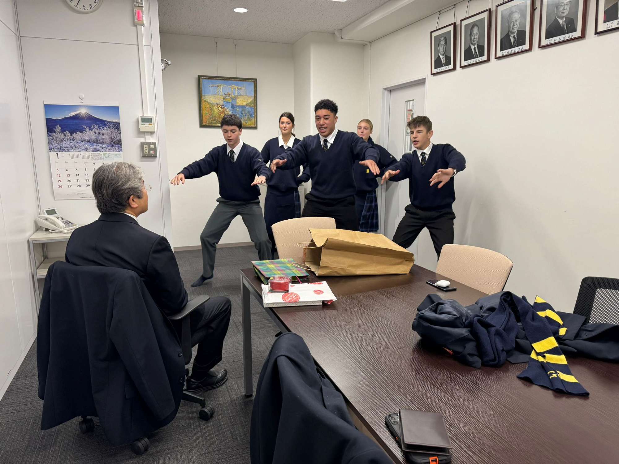 Mr Oki – JG Principal was delighted when our students performed an impromptu MBC Haka for him as he would not be present at the Sayonara.
