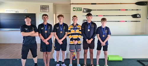 Aidan Bennett, Willem Rowe, Hunter Marfell, Logan Flight, Blake Marfell (cox)