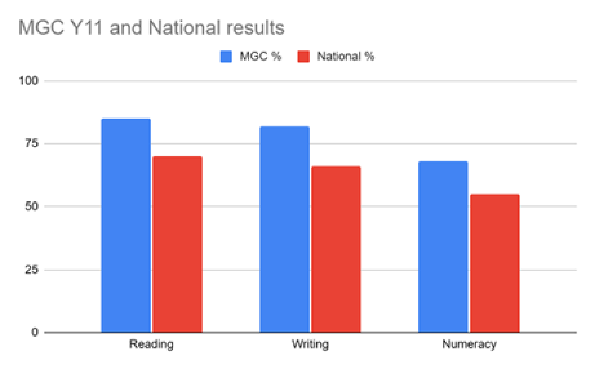 We are also very proud of the progress and achievement our Year 11’s have made in the Common Assessment Activities, often called CAAs. At MGC, we enter all students in Year 11 in these Literacy - reading & writing - and Numeracy assessments which are now required to gain NCEA Levels 2 and 3. Congratulations to everyone for your results, which were: