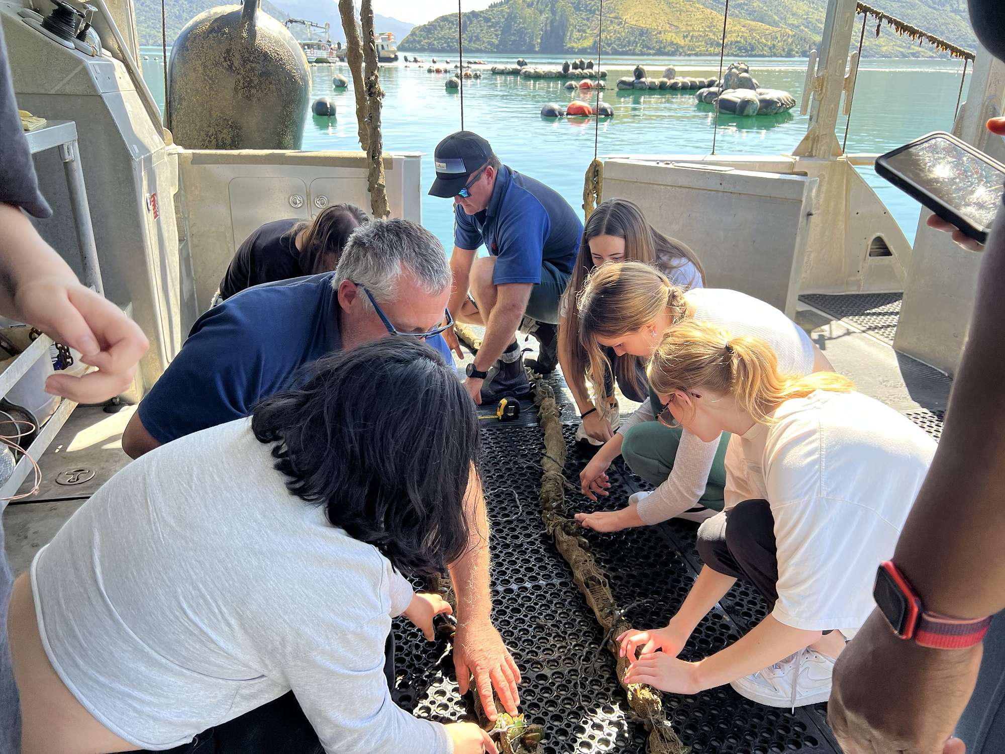 On Wednesday 16 March, students in STA301 travelled by boat to visit a Mussels farm at Havelock.