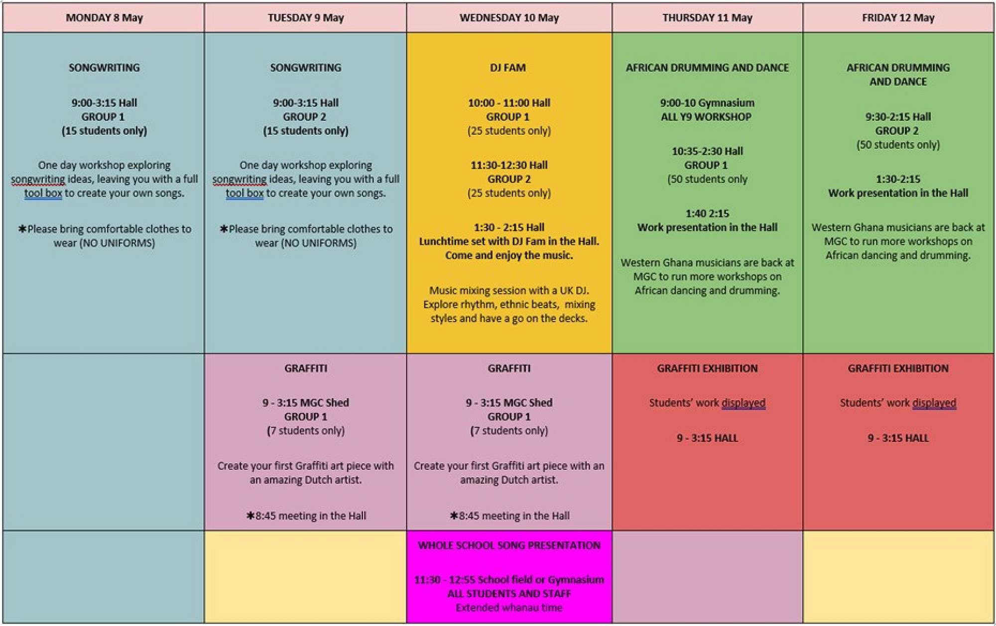 Students will be able to choose a workshop or two to attend and try a range of activities - Graffiti painting, African dancing and drumming, Songwriting or Mixing music on the decks. On Wednesday, 10th May at 11:30 all Staff and all students will sing a song in the school field called Lead with Love.