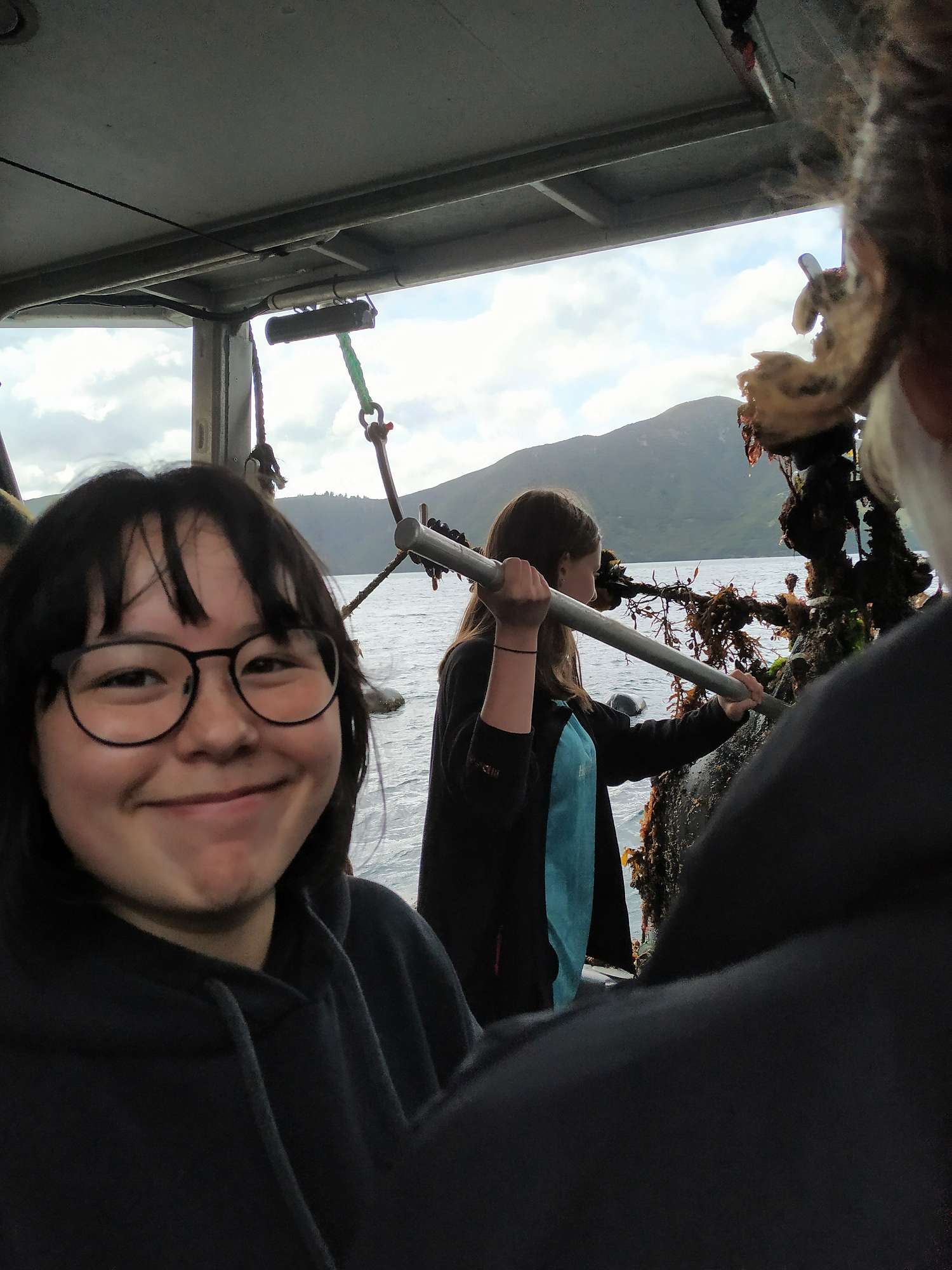 Tuesday 5th April was a grey day, but that didn’t stop our intrepid group of adventurers from venturing into the Marlborough Sounds on MV Grey Heron, for our Aquaculture Field Trip.