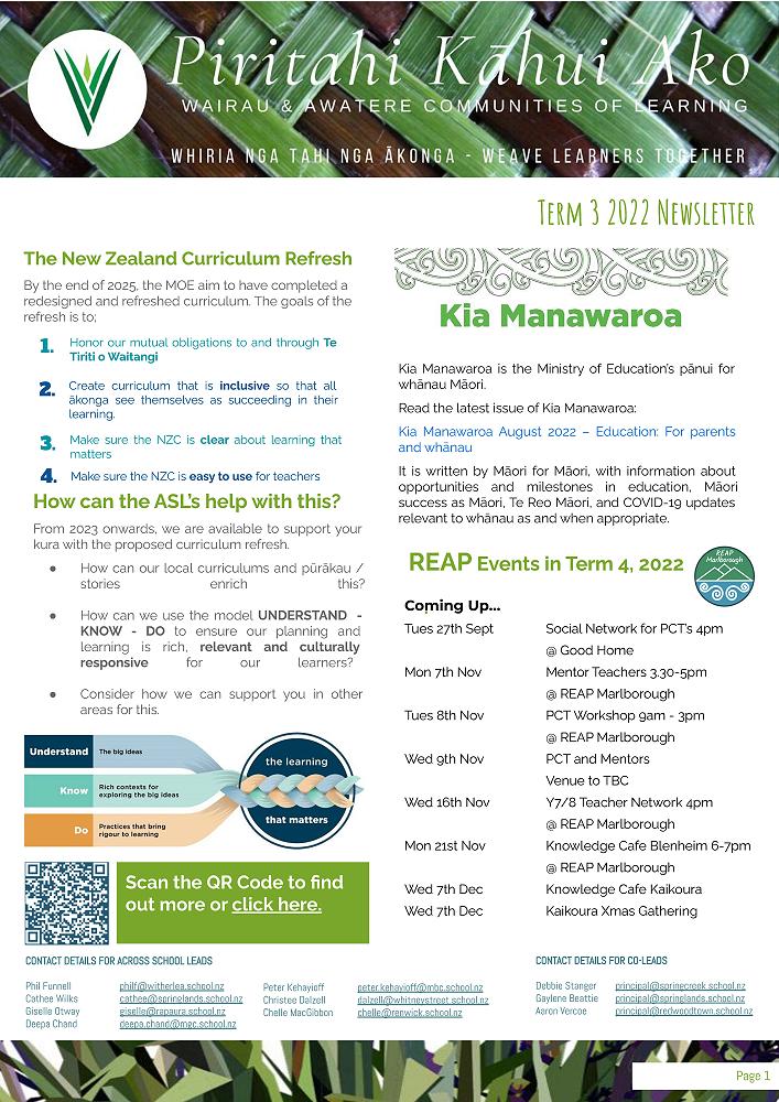 Piritahi Update Piritahi Kahui Ako — September 23rd, 2022 Here is the latest update from the Piritahi Kāhui Ako Piritahi Newsletter Term 3 2022 — Image by: Piritahi Kāhui Ako Piritahi Newsletter Term 3 2022 — Image by: Piritahi Kāhui Ako Gallery Attachments Piritahi Newsletter Term 3 2022
