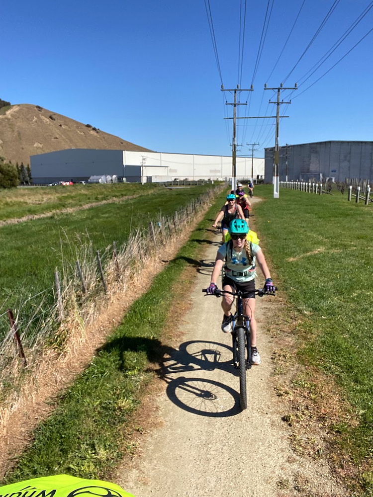 For the first day, we biked the Redwood Pass out to Seddon. We stopped for lunch at the Riverlands truck stop and played mini golf. Day one was a beautiful sunny day. That night the wind started at our campsite on Miss Boyce’s family farm.