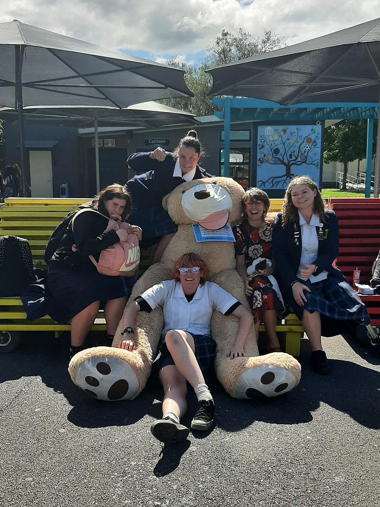 To bring an end to our amazing week full of Hauora enhancing activities, we finished by celebrating taha Whānau, the social aspect of Hauora. This celebration involved bringing seniors and juniors together for some social fun on the quad at lunchtime on Friday. This included jump jam with some carefree dancing and singing fun! The youthline big bear joined us and provided additional fun, interest and hugs! We played ‘name the seven foot bear’ and students took the opportunity to get a photo with the bear. It was a great way to end Hauora week and bring everyone together to celebrate “We Rise by Lifting Others”.