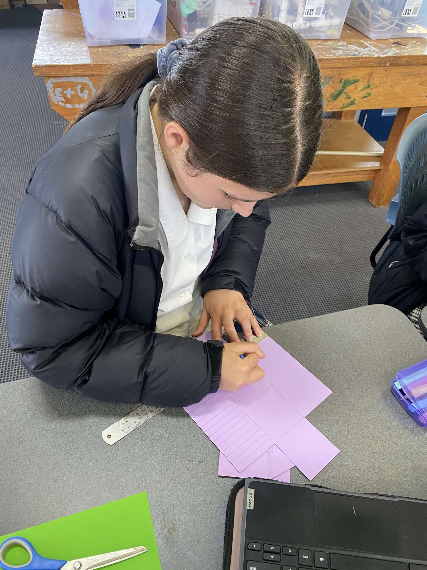 MakeHer Space class were tasked with created a kete out of paper. They used a combination of card and paper to weave a basket. In Jewellery students are in the processes of designing an item of Jewellery that is reflective of Te wiki o Te Reo Maori.