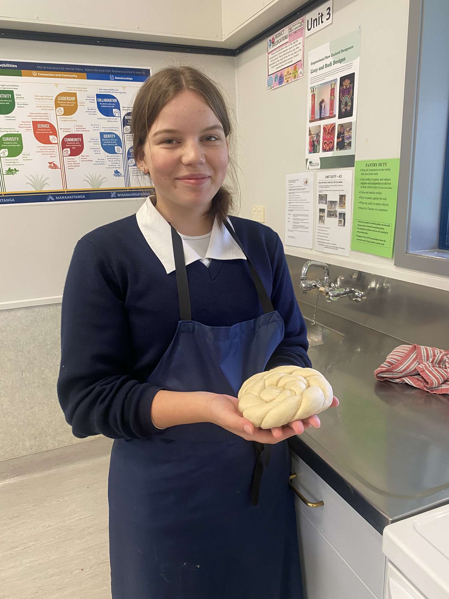 In Ideas to Plate, the year 9 food technology class, students were tasked to create a design that was inspired by research of traditional designs and research their meaning. The design was applied using a simple parāoa recipe.