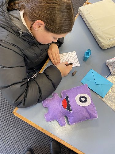 No two student designs are the same, and some have included a note introducing the monster and sending hope and love to the child. Jaye and Olivia share their perspective on the project below: