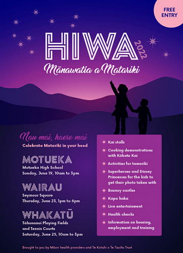 Te Ao Haka and Te Riu o Te Wairau Kapahaka will be performing at 2:30pm on Thursday 23 June at Hiwa Matariki.