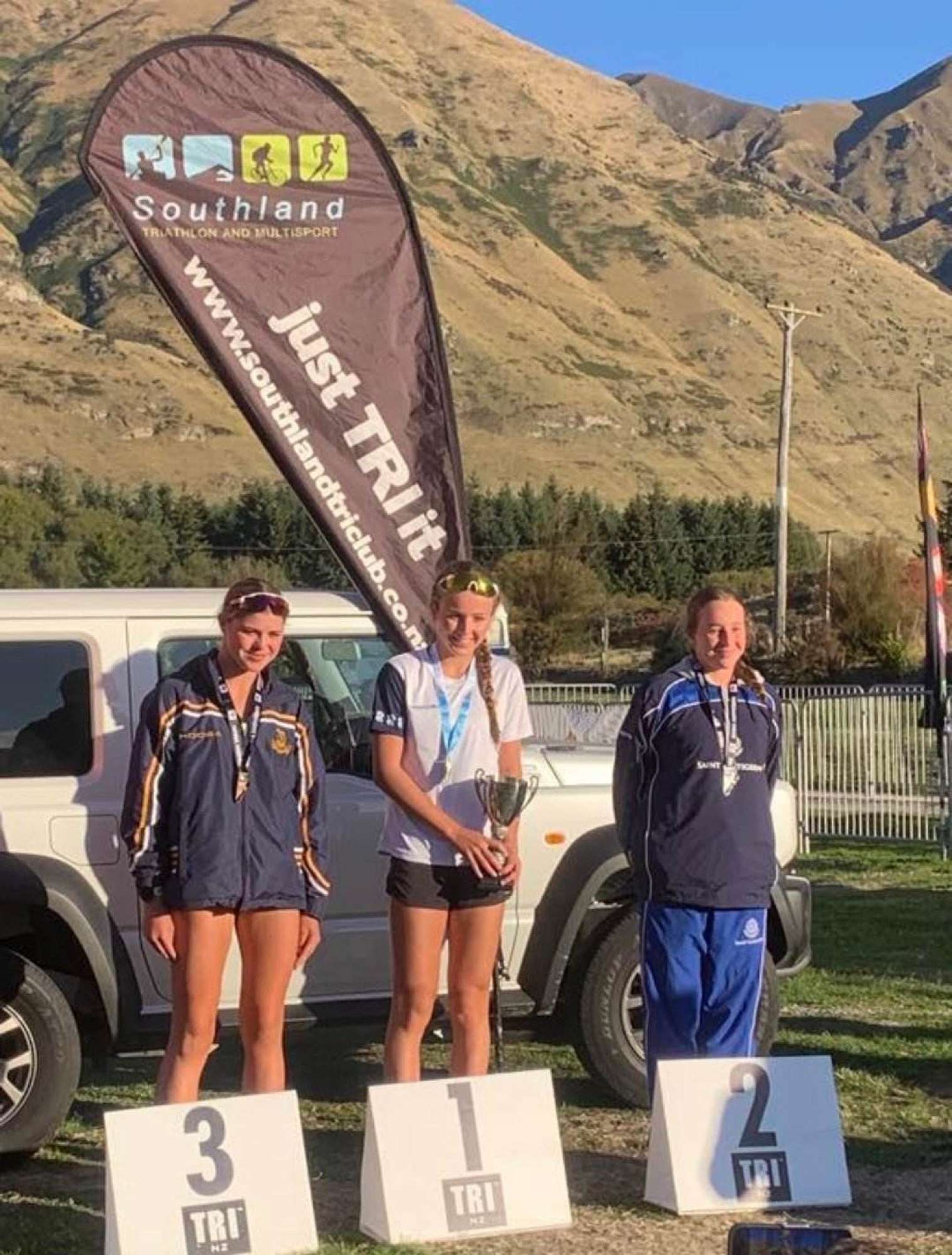 Neve McKenzie (Year 10) placed 3rd in the U16 Girls NZSS Triathlon in Wanaka in very chilly conditions that saw the officials delay the start due to the cold temperatures. During the transition from the swim to the bike, Neve's wetsuit zip locked in position, and she was unable to remove the wetsuit and lost valuable time until a marshall was able to assist. Neve proved amazing resilience and chased down the pack on the bike and run, to finish in 3rd place. An outstanding result given the circumstance. Well done.